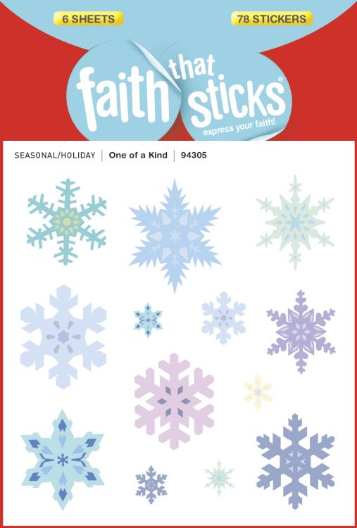 Snowflakes are one of a kind-and so are these foil-edged stickers that reflect and shine when you move them from side to side. Perfect for Christmas or winter parties, they also help teach boys and girls that they are special and unique. Largest stickers are 1 ” x 1 “. Six sheets, 13 stickers per sheet; 78 stickers per package.