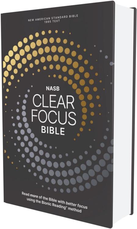 Finally, a resource to keep your mind from wandering while reading the Bible!Have you ever realized you’ve read a passage multiple times in a row and still can’t recall what it says? The NASB Clear Focus Bible uses Bionic Reading(R), which enables you to read more and with greater comprehension. Developed by Swiss scientists, Bionic Reading bolds the portion of each word most critical for comprehension and guides the eye from word to word over the text. This allows the brain to stay engaged, identify previously learned words, and absorb information without losing focus.In a world dominated by shallow forms of reading, the NASB Clear Focus Bible is the first-ever Bible available with Bionic Reading and encourages more in-depth understanding of written content. Imagine a quiet time where you read longer, read with more clarity, and give Scripture the undivided attention it deserves.Features:Full text of the New American Standard Bible, 1995 TextApplication of the award-winning Bionic Reading text method, enabling you to read more and with greater comprehension in a hectic and noisy worldReading plansHardcover binding lies flat when openType size: 7.8