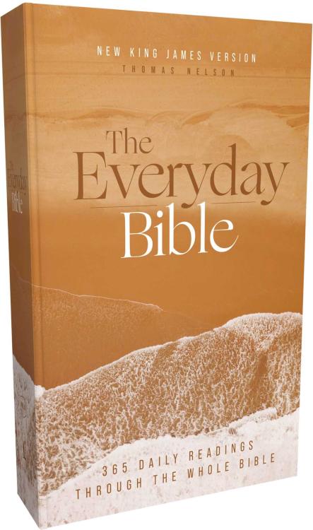 The Everyday Bible guides you to read the entire Bible in 365 sections designed for daily 15-minute readings. Each day is a blend of Scripture from the Old Testament, Psalms, Proverbs, and the New Testament. With no complicated charts or plans, this provides a simple way to read the Bible in one year.Features include:The complete NKJV Bible presented in 365 sections365 daily readings to move through the Bible from Genesis to Revelation in order. Each day includes 2-3 chapters of the main reading with a section of a Psalm and a few verses from Proverbs to move through those books once during the year.Table of Contents guides you to where each month of the year begins and the start of each book of the BibleClear and readable 9.5-point NKJV Comfort Print