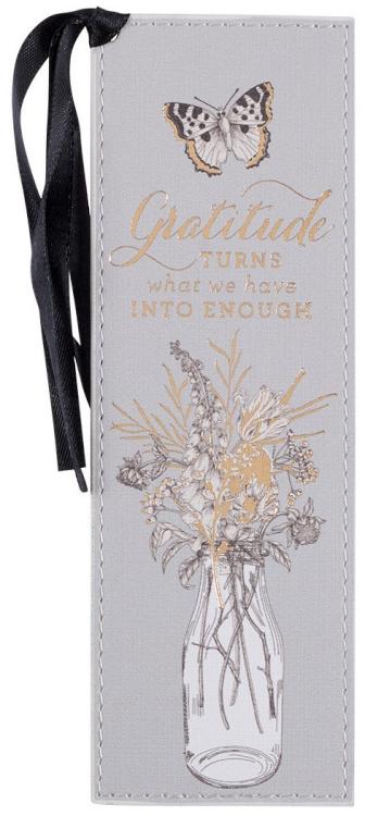 Share this faux leather bookmark with a book-loving friend to remind her that there is always something to be grateful for. Giving thanks reminds us how much we have, so tell a friend you re thankful for her by giving this as a birthday, holiday, or just-because gift. Pair it with a coordinating journal for an amazing gift. Let the Garden Notes Gray Faux Leather Bookmark inspire you towards gratitude as you read!