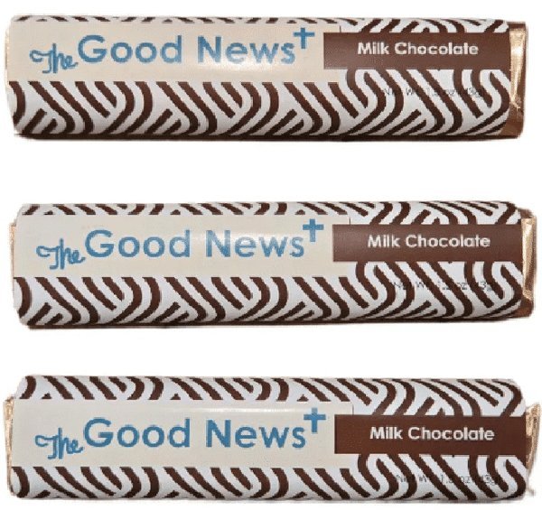The Good News Chocolate your gospel chocolate company. Each chocolate bar comes with a wrapper that has the gospel and bible verses on the inside.