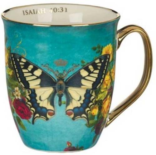 The Hope Teal Butterfly Ceramic Mug is just one of the items in the Teal Secret Garden Hope Collection, offering a range of complementary products that can be gifted together for a coordinated and meaningful presentation. This collection includes a ceramic coffee mug, a glass water bottle, a stainless steel mug, a notebook set, a ceramic coaster set, a magnet set, a faux leather Bible case, and a gift bag.