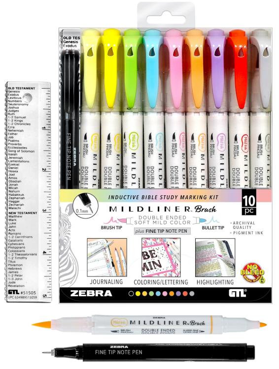 The soft, mild colors featured in the Mildliner Brush Marking Kit are perfect for Bible study and creative time.