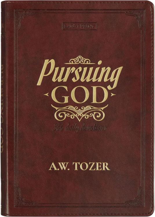 The Pursuing God Saddle Tan Faux Leather Devotional is a compilation of 366 daily readings from the heart and mind of Dr. A.W. Tozer. The selections have been gleaned from his taped sermons, with additional excerpts from his published books and his incisive editorials. His helpful personal illustrations, testimonies, and spiritual concerns have been scattered throughout these pages, all glorifying the Person of Jesus Christ, our Savior and LORD. In this collection, Tozer calls readers to reflect on God’s Word, consider who God is, and turn to Him in prayer.