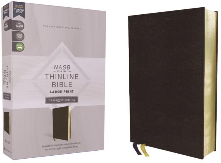 Elegantly Uniting Single and Double Columns in One BiblePassaggio Setting Bibles elegantly shift between the visual beauty and clarity of a highly readable single-column text for prose and a clean double-column text for poetry. The term passaggio comes from the world of classical singing, describing the shift a performer makes between vocal registers.Vocalists who can skillfully move from one register to another have mastered passaggio singing.Bibles that can skillfully move from single-column to double-column are in a Passaggio Setting.Passaggio Setting Bibles allow the literary structure of each passage to determine the way you see Scripture on the page. This unique use of columns enhances natural readability while also allowing for more efficient use of the page.Universally recognized as the gold standard among word-for-word translations, the beloved New American Standard Bible, 1995 Edition, is now easier to read with Zondervan’s exclusive NASB Comfort Print typeface. The NASB Thinline Large Print Bible, Passaggio Setting gives you the translation celebrated for faithfulness to the original biblical languages while also providing a smooth reading experience. Features:The full text of the New American Standard Bible, 1995 TextPassaggio Setting skillfully unites single and double columns into one clear, beautiful arrangementPresentation pageDesign concept developed in partnership with 2K/DENMARKParagraph formatLine-matched Bible text minimizes see-throughWords of Christ in redTwo satin ribbon markersExclusive Zondervan NASB Comfort Print typeface11-point print size