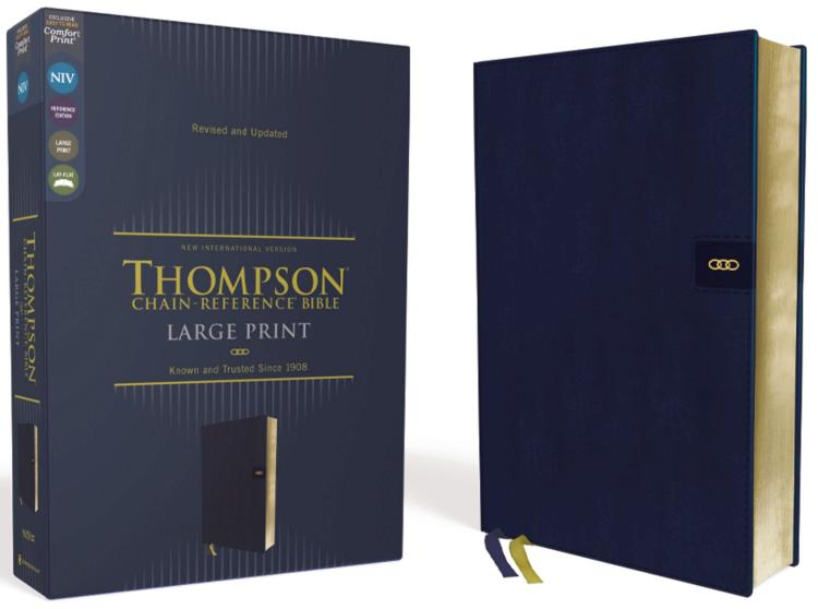 An easy-to-learn, easy-to-use tool for in-depth Bible studyBeloved and acclaimed for more than five generations, the Thompson Chain-ReferenceA(R) Bible is unparalleled in its ability to enrich personal devotions, topical study, and sermon preparation. This unique reference Bible enables you to search the breadth of Scripture’s teachings on thousands of topics and allows you to follow those topics throughout the entire Bible. With over 100,000 references listed in the Bible’s margins, covering over 8,000 topics, the Chain-Reference System is an ideal tool for comprehensive topical study. The Thompson Chain-Reference Bible also offers a library of additional study resources that allows readers to interpret the Bible using related scripture passages rather than consulting a commentary.The NIV Thompson Chain-Reference Bible, Large Print is printed in Zondervan’s exclusive NIV Comfort PrintA(R) typeface for easy reading. Expertly designed specifically to be used for the New International Version (NIV) text, Comfort Print offers an easier reading experience that complements the most widely read modern-English Bible translation. It also features a fresh, two-color design that preserves the original look of the chain-reference system, while making each page cleaner and easier to read.Features:Complete text of the accurate, readable, and clear New International Version (NIV)Easy-to-understand Chain-Reference System with over 100,000 topical referencesAlphabetical and numerical indexes highlight study materials for over 8,000 topics, each with its own pilot number, for exhaustive topical studyAn extensive study resource section includes biographical sketches, illustrated studies of the Bible, a concordance, Bible harmonies, and archeological informationFresh, two-color page design66 book introductions16-page full-color map section with map indexWords of Jesus in redPresentation page for gift-givingGilded page edgesTwo 3/8-inch wide satin ribbon markersLeathersofta cover lies flat when openExclusive Zondervan NIV Comfort Print typeface10.5-point print size